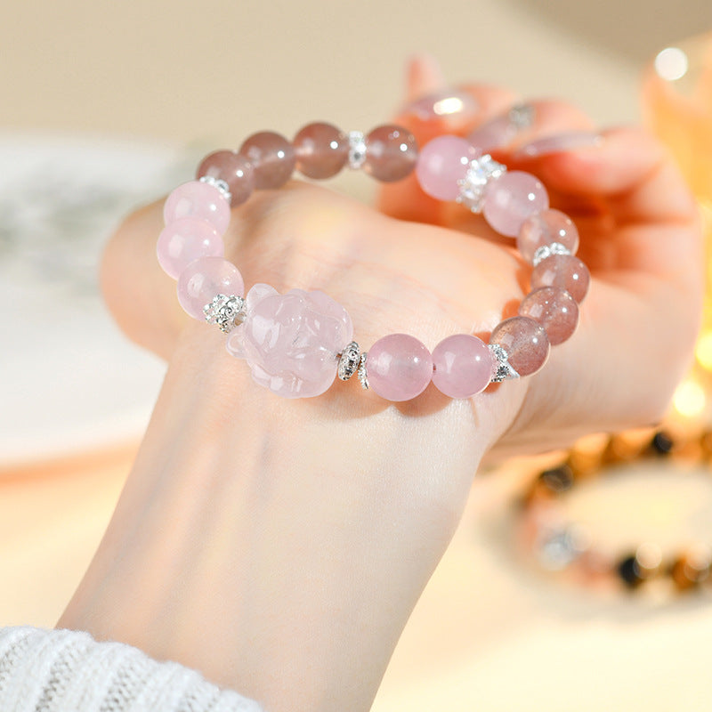 This bracelet combines the gentle energies of Rose Quartz and Strawberry Quartz, helping you release negative energy, promote emotional healing, and bring inner peace and happiness. Wearing it will attract more love and positive energy, enhance self-awareness, and help you face every challenge in life while moving towards a more harmonious and successful future.