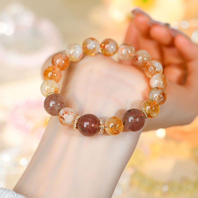 This bracelet combines the energies of Yellow Tower Quartz and Strawberry Quartz, bringing not only wealth and good fortune but also promoting emotional harmony and inner balance. Wearing it will attract more positive energy and opportunities, provide emotional healing and wisdom enhancement, and help you confidently face every challenge in career and life.